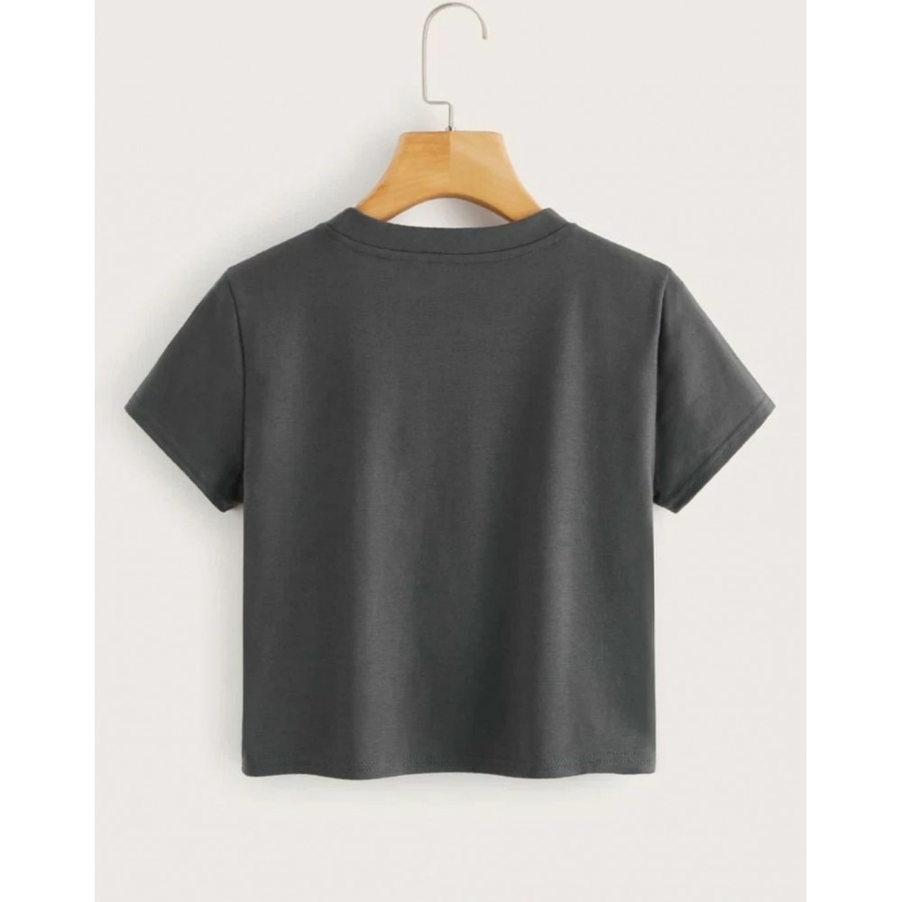 Contrast Color Letter Embroidered Short-Sleeved Sweater Women's T-Shirt