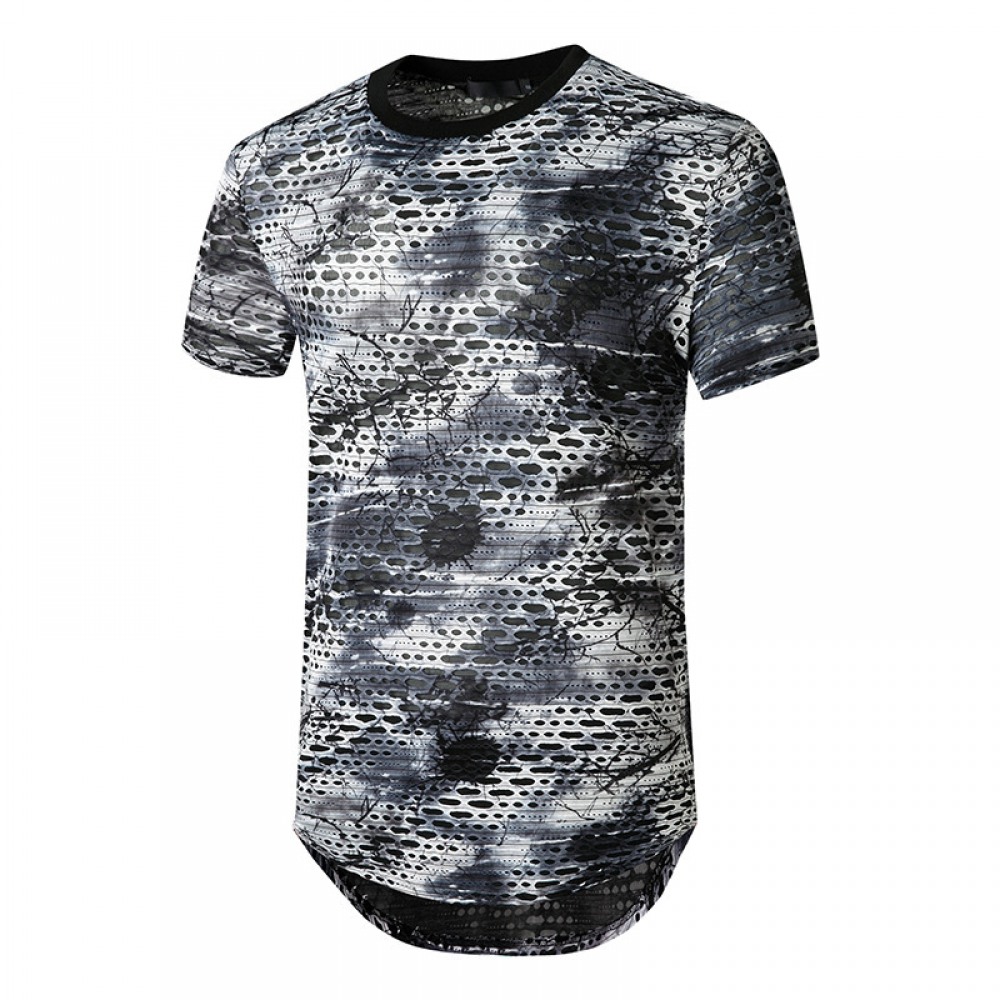 New Summer Men's Casual Street Men's Short-Sleeved T-Shirt Cotton and Linen Lace Casual Fashion