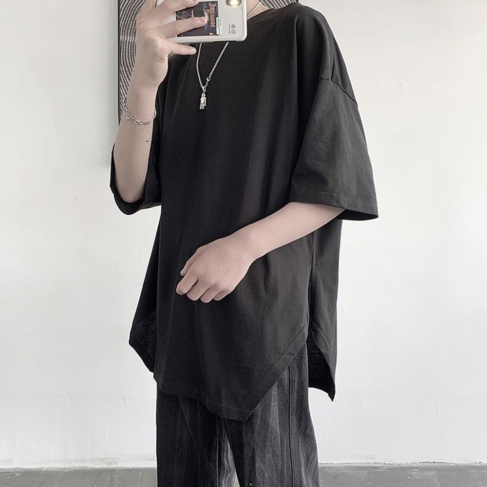 New Men's Flat Tile Large Size Hip-Hop Celebrity Style Long Short Sleeve T-Shirt