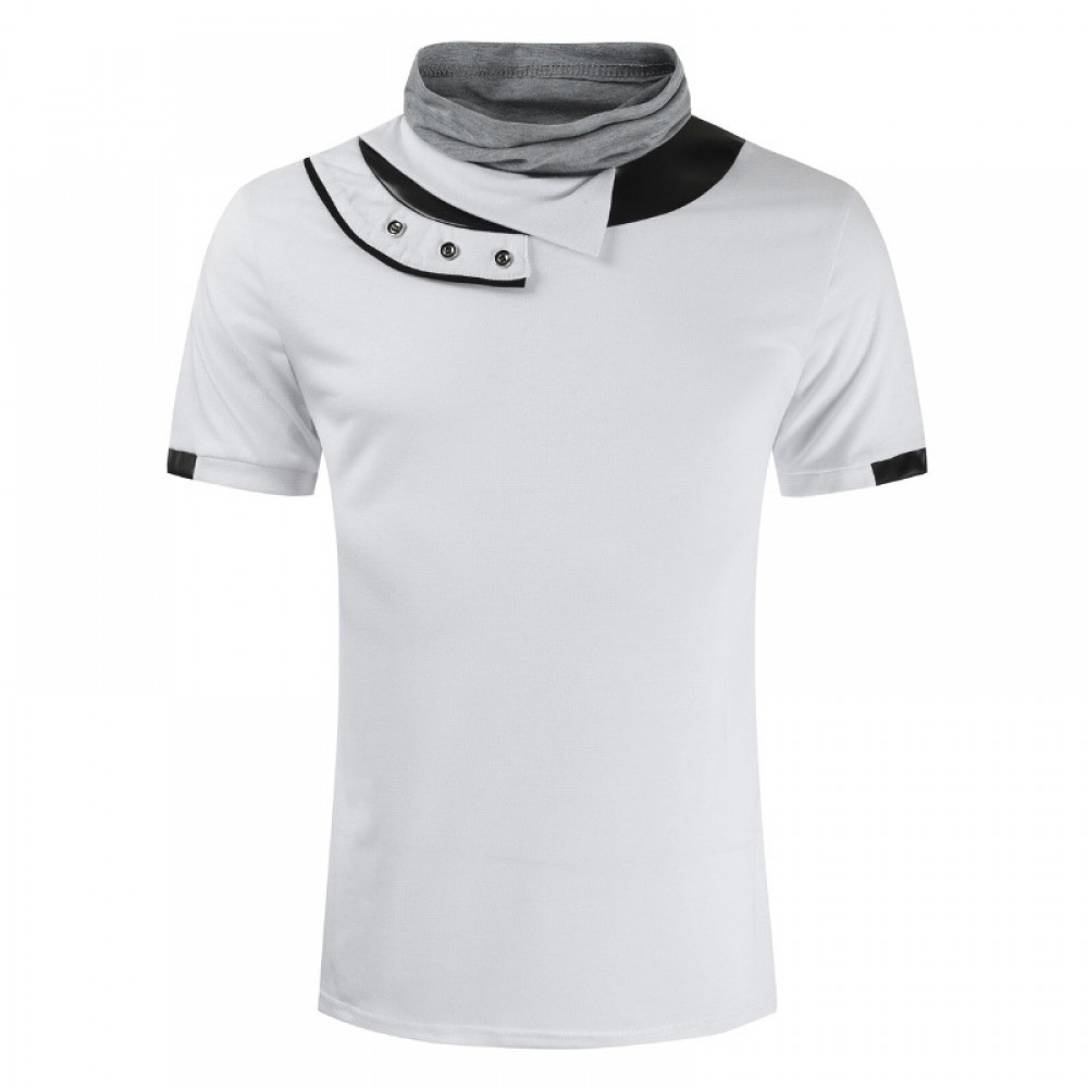 New Arrivals Short-Sleeved Stitching Color Matching Collar Men's Bottoming Shirt T-Shirt