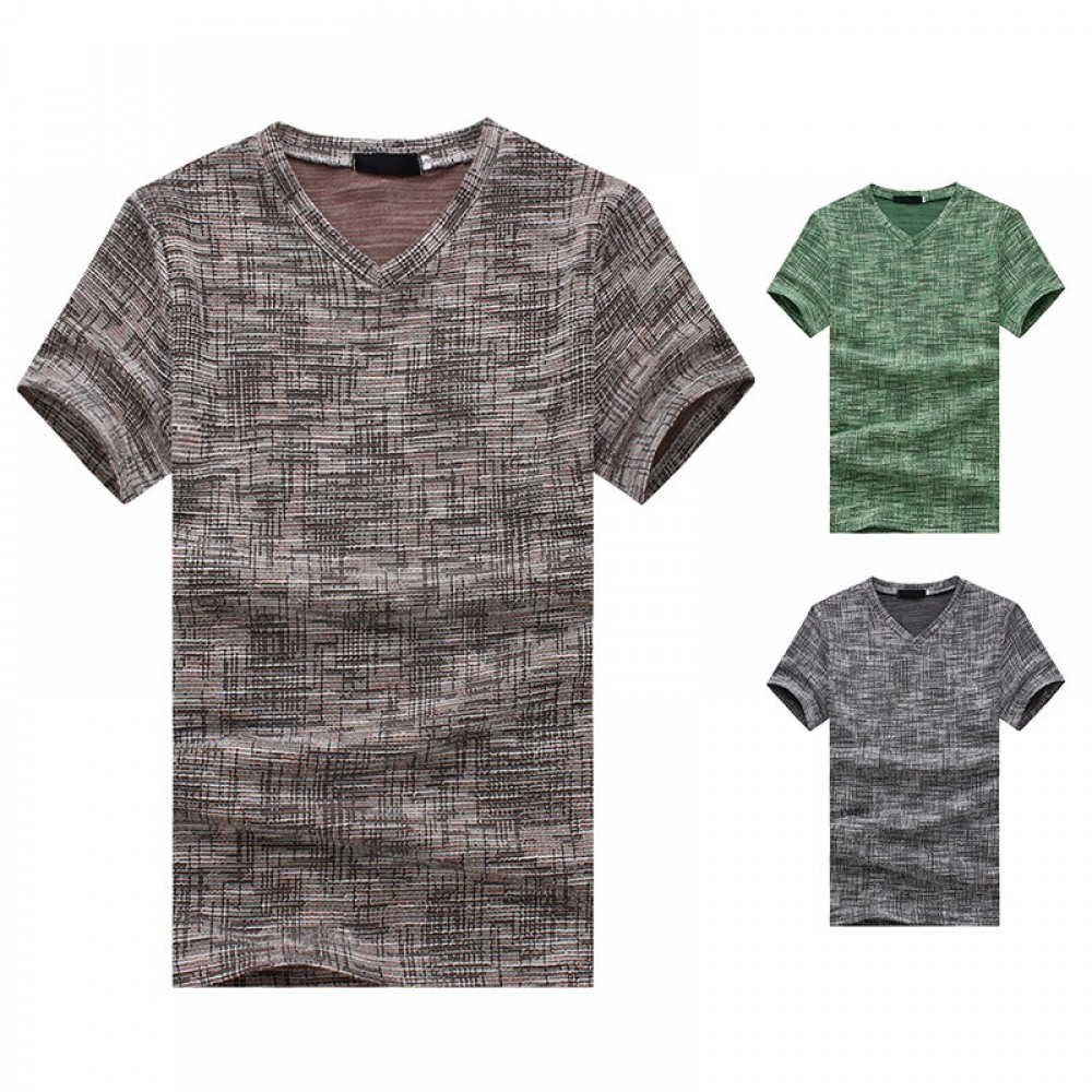 New Summer Men's Short-Sleeved T-Shirt Mens Contrast Striped Slim Casual T-Shirt