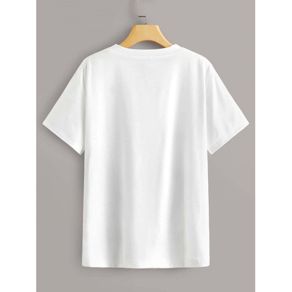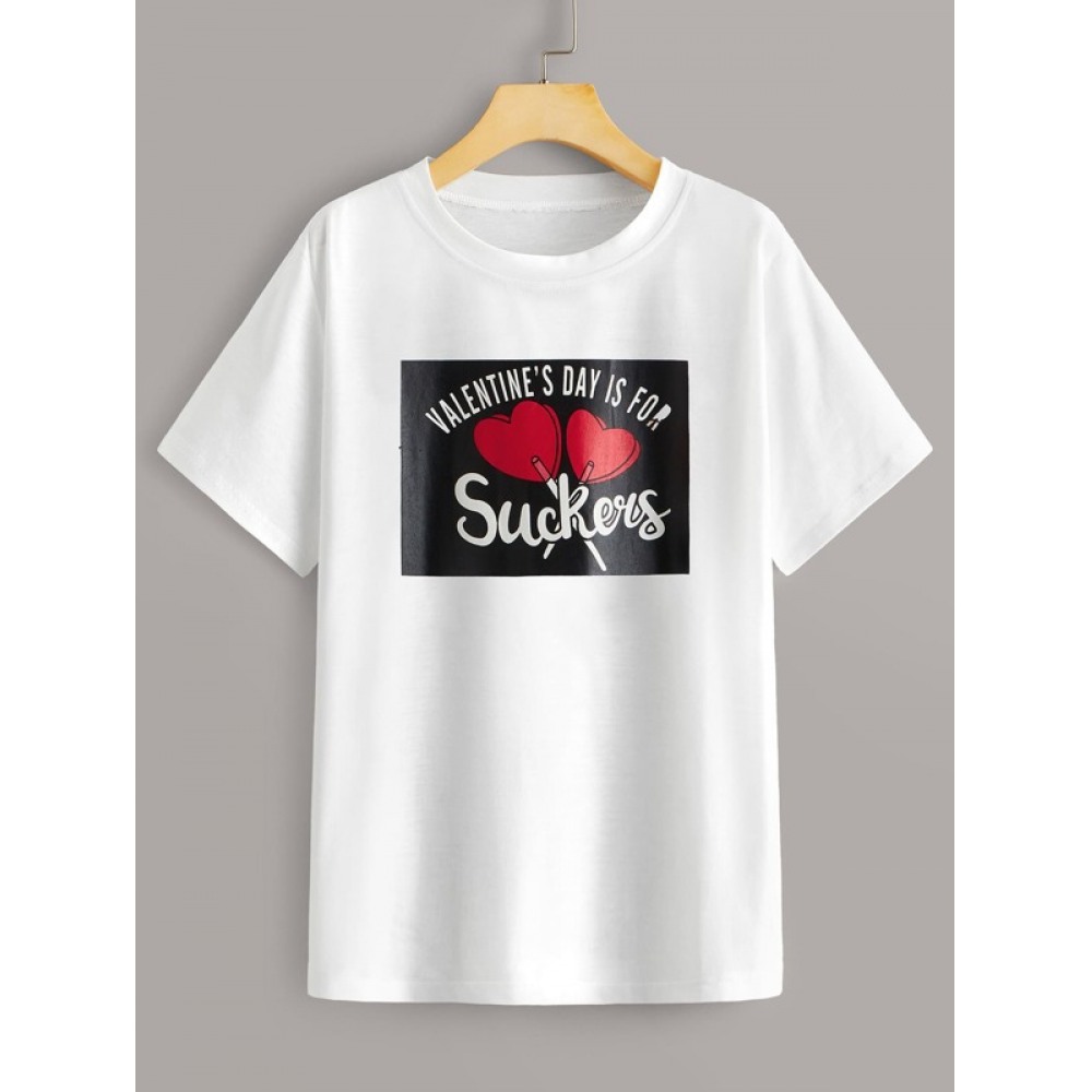 Letter Print Round Neck Short T-Shirt