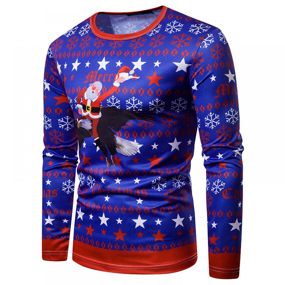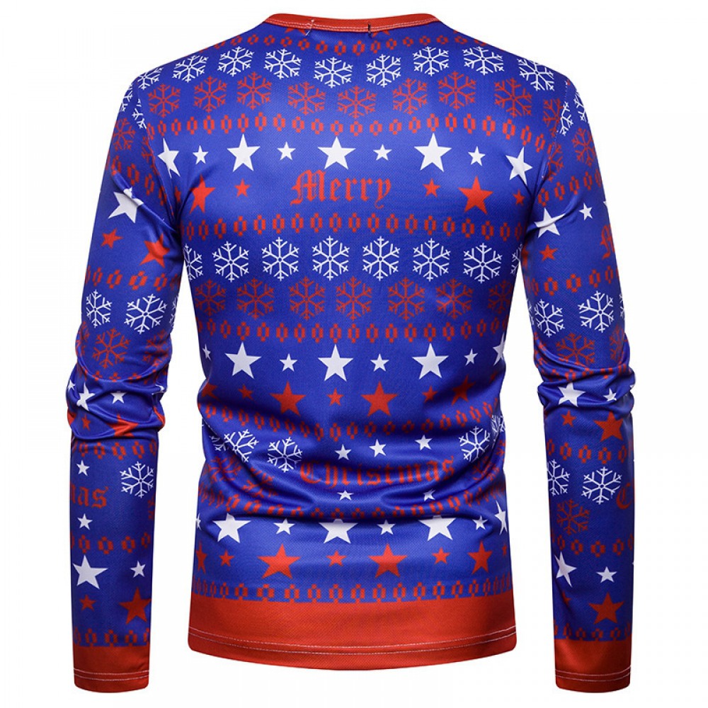 3D Personality Printing Fashion Men's Christmas Santa Pattern Long-Sleeved T-Shirt