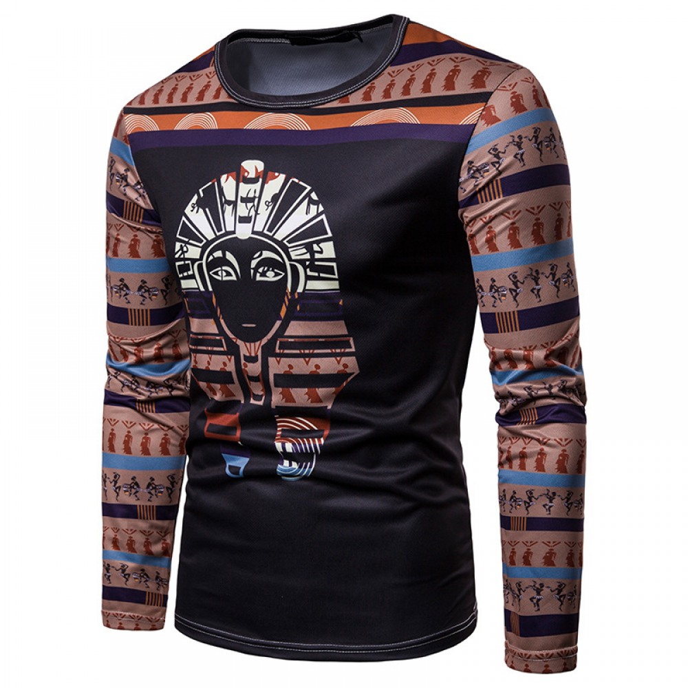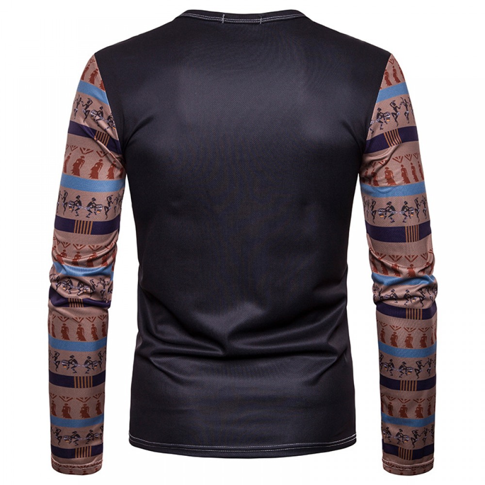 Men's Ethnic Style Floral 3D Printing Round Neck Long Sleeve T-Shirt