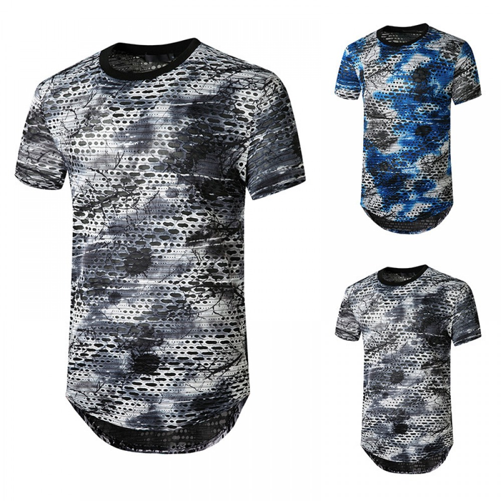 New Summer Men's Casual Street Men's Short-Sleeved T-Shirt Cotton and Linen Lace Casual Fashion