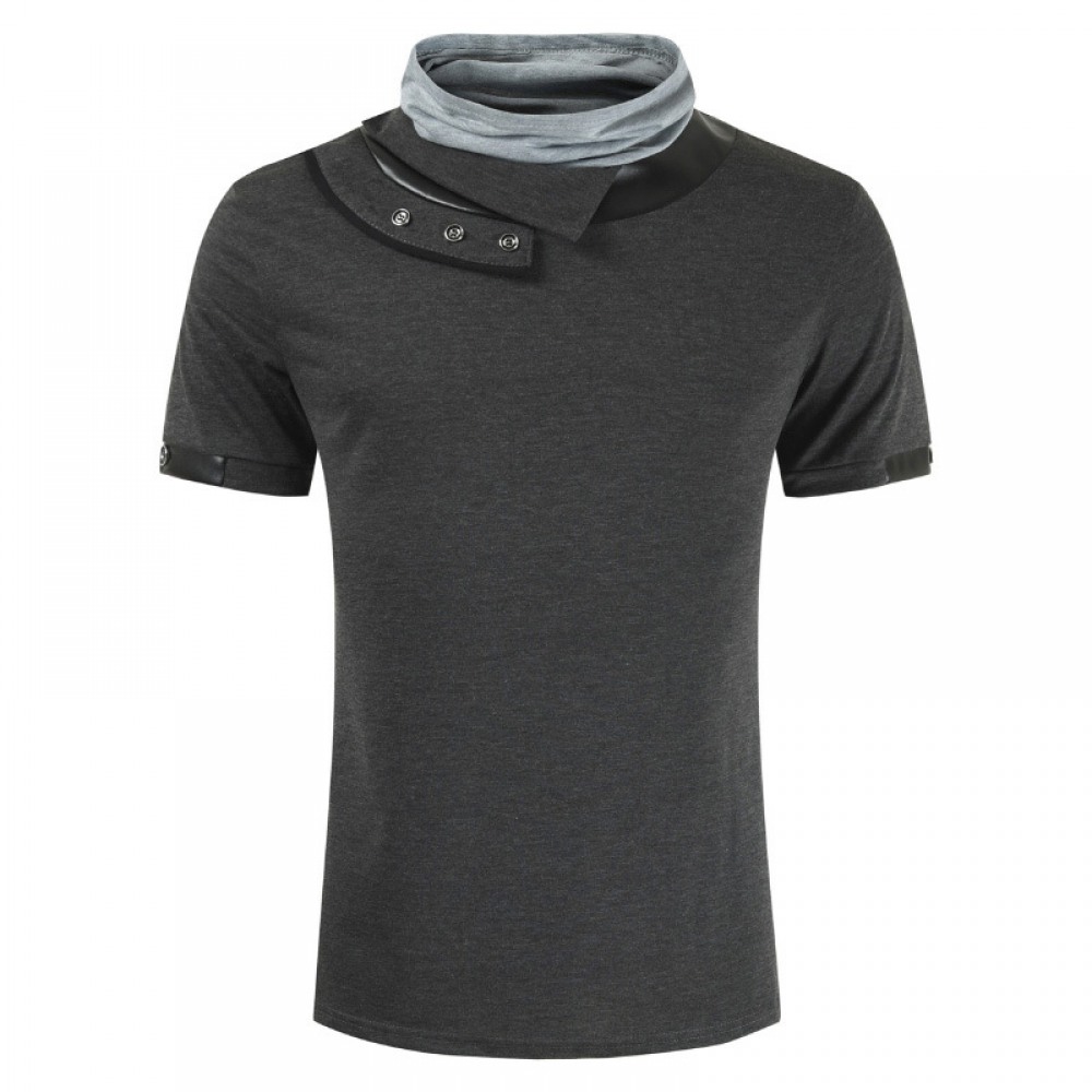 New Arrivals Short-Sleeved Stitching Color Matching Collar Men's Bottoming Shirt T-Shirt