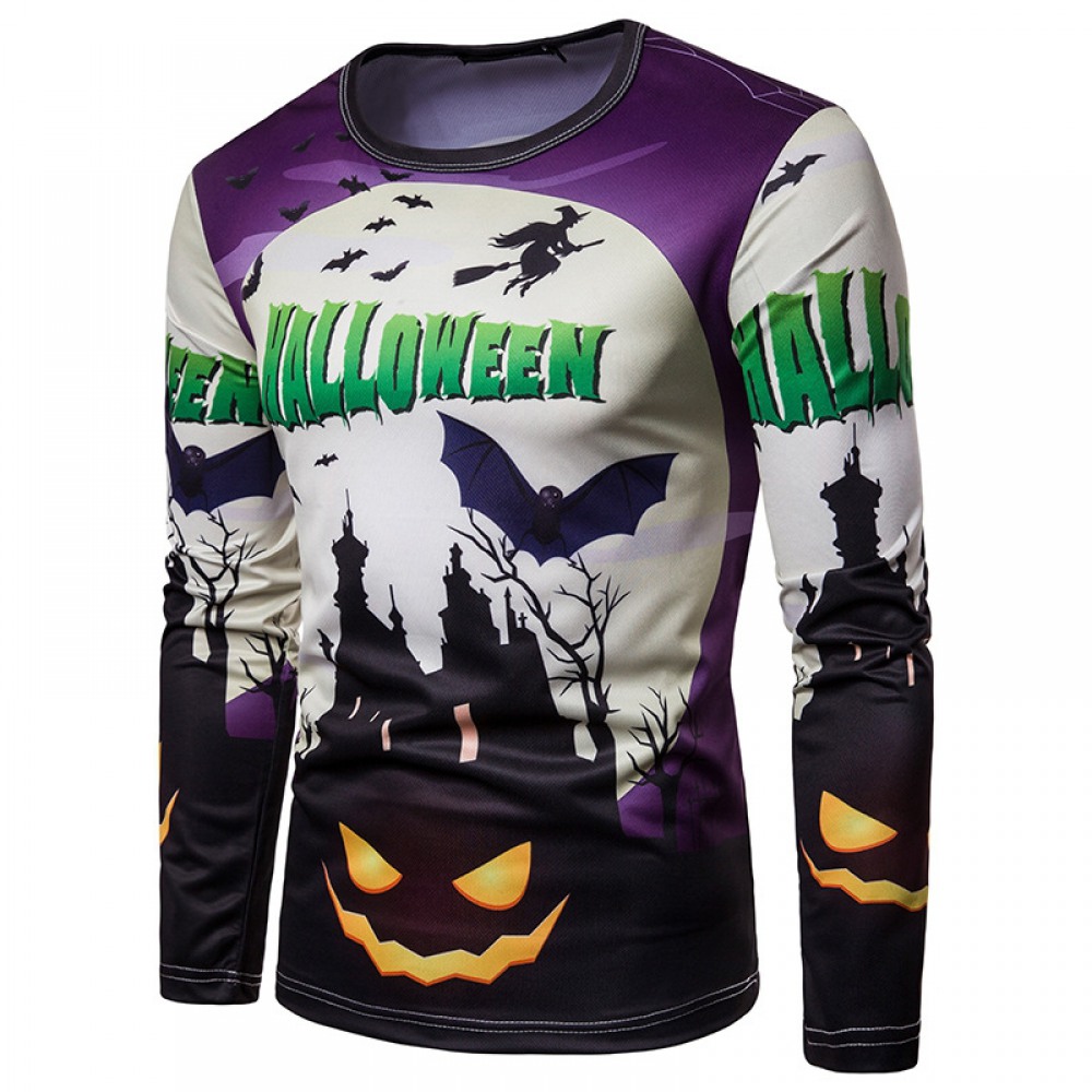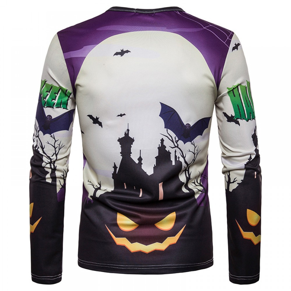 New Men's Halloween Round Neck 3D Personality Printing Long-Sleeved T-Shirt