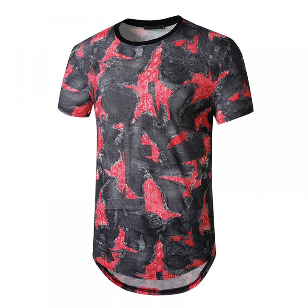 Men's Short-Sleeved T-Shirt With Irregular Large Slits