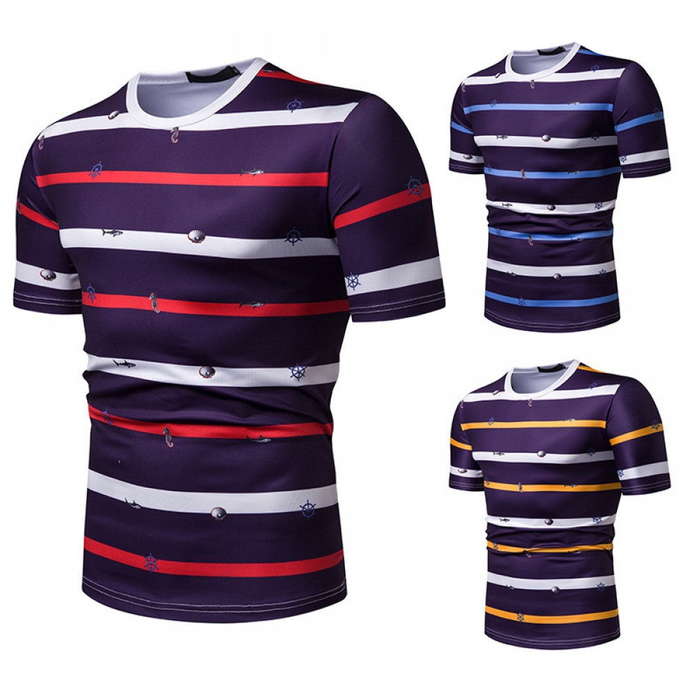 New Summer Men's Short-Sleeved T-Shirt Men's Contrast Striped Slim Casual T-Shirt