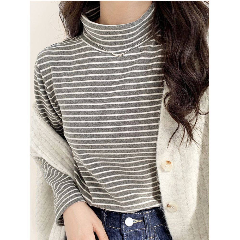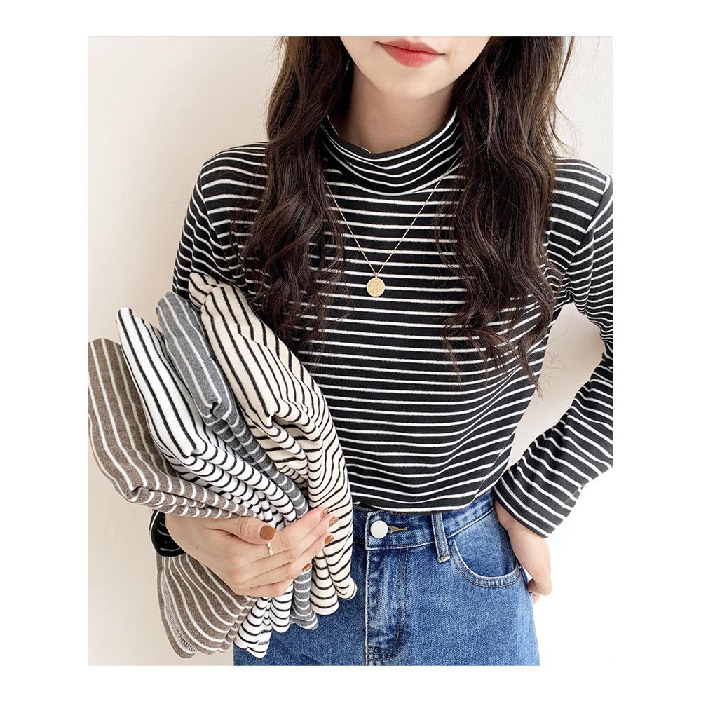 Striped Bottoming Shirt Women's Loose Half Turtleneck T-Shirt